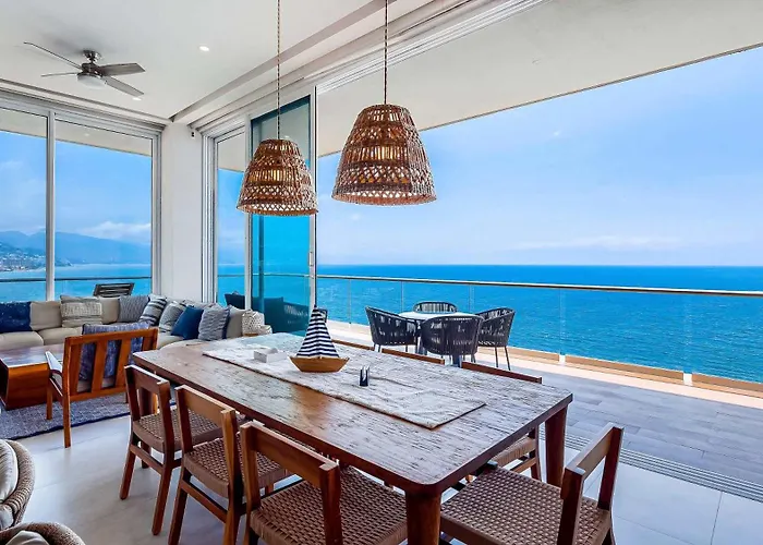 Este apartamento frente a la playa, Panoramic Oceanview Luxury 4Br Penthouse Puerto Vallarta, es un lugar estupendo para alojarse en el barrio Hotel, a 2 km del Malecón Boardwalk. Este apartamento de 242 m² acoge a los huéspedes con bañera de hidromasaje y se encuentra a unos cuantos pasos de Playa Camarones.